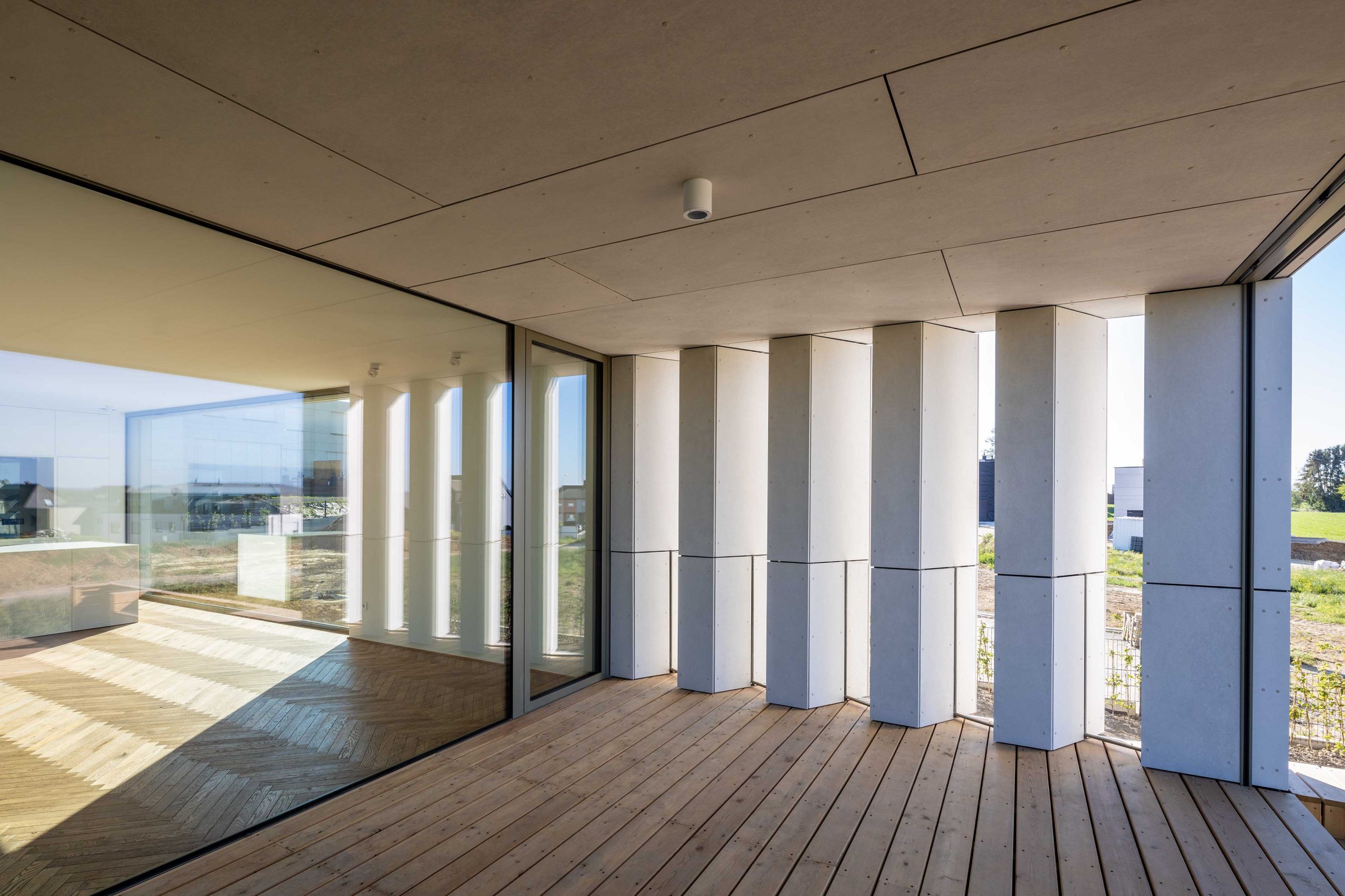 L’engagement envers l’efficacité énergétique et le respect de l’environnement a été au cœur de la conception de la maison L13. Pensée dans une optique de haute performance énergétique, elle est entièrement autonome et dépourvue de toute dépendance aux énergies fossiles. Les matériaux choisis ont été soigneusement sélectionnés pour leur durabilité et leur empreinte écologique réduite. L’Eternit, utilisé en façade, offre non seulement une esthétique moderne et raffinée, mais également une durabilité à toute épreuve. Le bois, provenant de sources locales, est omniprésent, incarnant à la fois l’élégance intemporelle et l’engagement envers la préservation de notre précieux environnement.
